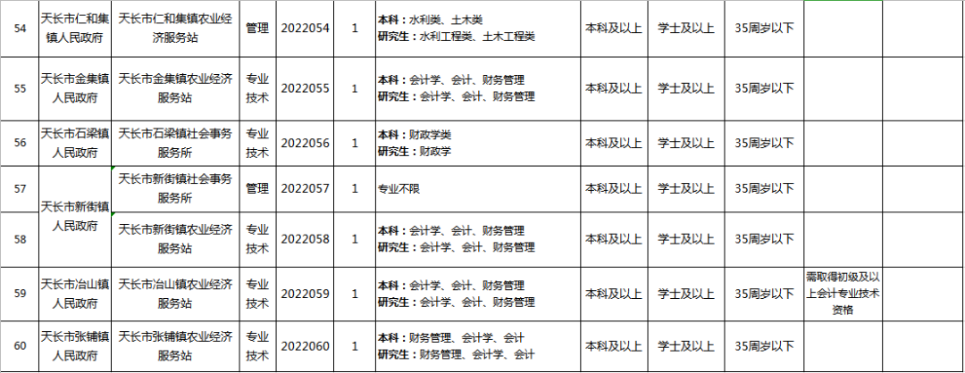 2022年度天长市事业单位公开招聘工作人员73名,招聘计划(岗位)等信息于5月27日起在天长市人民政府网站及相关媒体上统一发布。
